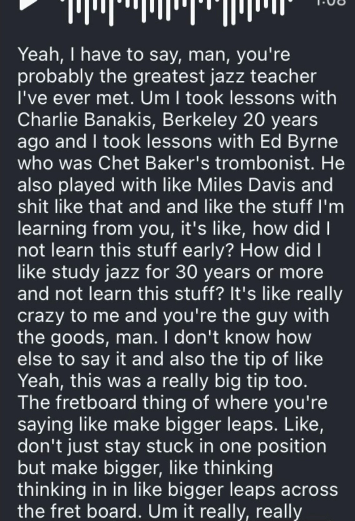 I work with everyone from complete beginners to advanced players who've been stuck for years, helping them unlock real fretboard fluency and access flow state on demand.